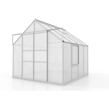 Die Scheiben, ob aus Polycarbonat oder Sicherheitsglas, werden im Gewächshausrahmen mit den bewährten Federklammern verankert. Während die Hohlkammerplatten an einem Stück zwischen den Profilen befestigt werden, wird das Glas überlappend montiert (Klinkerverglasung). Jedes Modell ist serienmäßig mit einem Seitenfenster, zwei Dachfenstern und Regenrinnen ausgestattet. Das Gewächshausset beinhaltet passendes Zubehör.