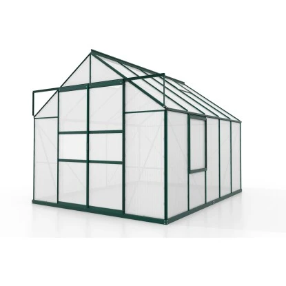 Die Scheiben, ob aus Polycarbonat oder Sicherheitsglas, werden im Gewächshausrahmen mit den bewährten Federklammern verankert. Während die Hohlkammerplatten an einem Stück zwischen den Profilen befestigt werden, wird das Glas überlappend montiert (Klinkerverglasung). Jedes Modell ist serienmäßig mit einem Seitenfenster, zwei Dachfenstern und Regenrinnen ausgestattet. Das Gewächshausset beinhaltet passendes Zubehör.