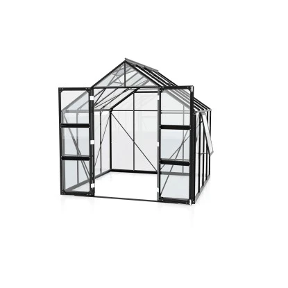 Das Gewächshaus Olymp ist in vier verschiedenen Größen mit Grundflächen von 6,7 bis 11,5 Quadratmetern und in drei verschiedenen Farben erhältlich.