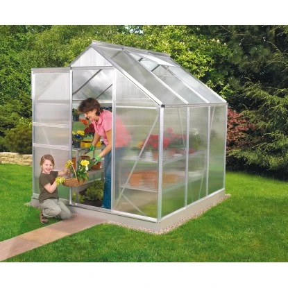 Die energiesparenden und UV-stabilisierten Hohlkammerplatten mit einer Stärke von 6 mm, sind weitestgehend bruchsicher und brechen dank ihrer milchigen Oberfläche das Licht, so dass das Abschattieren Ihrer Pflanzen nicht erforderlich ist. Die Verglasung erfolgt ohne Kitt mit rostfreien Glasfederklammern.