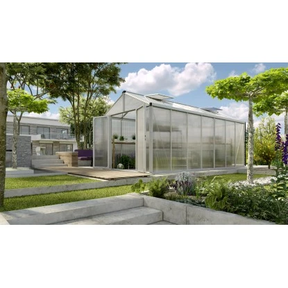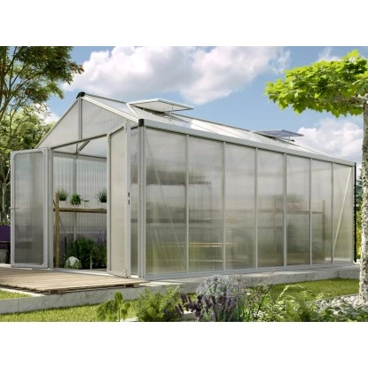 Der Vitavia Gewächshausbausatz Zeus Comfort 13800 aus besonders stabilen, eloxierten Aluminiumprofilen und einer Verglasung aus ca. 16mm starken, UV stabilisierten Hohlkammerplatten (PC) überzeugt durch sein formschönes und stabiles Design.