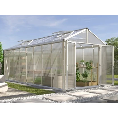 Der Vitavia Gewächshausbausatz Zeus Comfort 15700 aus besonders stabilen, eloxierten Aluminiumprofilen und einer Verglasung aus ca. 16mm starken, UV stabilisierten Hohlkammerplatten (PC) überzeugt durch sein formschönes und stabiles Design.