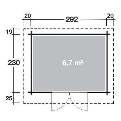 Das Wolff Finnhaus Holz-Gartenhaus ist kompakt gestaltet mit einer Grundfläche von 6,7 m². Es bietet eine Durchgangsbreite von 142 cm und eine Durchgangshöhe von 179 cm. Der breite Eingang ermöglicht ein einfaches Betreten des Holz-Gartenhauses, auch mit größeren Geräten, Gartenutensilien, Fahrrädern und Gartenmöbeln. Die Firsthöhe beträgt 217 cm, wodurch eine angenehme Kopffreiheit im Innenraum gegeben ist. Der Boden ist separat erhältlich.