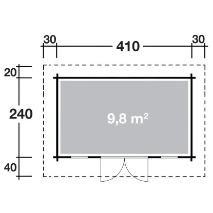 Das Wolff Finnhaus Gartenhaus aus Holz ist geräumig gestaltet mit einer Grundfläche von 9,8 m². Es bietet eine Durchgangsbreite von 134 cm und eine Durchgangshöhe von 186,7 cm. Der breite Eingang ermöglicht ein einfaches Betreten des Holz-Gartenhauses, auch mit größeren Geräten, Gartenutensilien, Fahrrädern und Gartenmöbeln. Die Firsthöhe beträgt 245 cm, wodurch eine angenehme Kopffreiheit im Innenraum gegeben ist. Der Boden ist bereits im Lieferumfang enthalten.