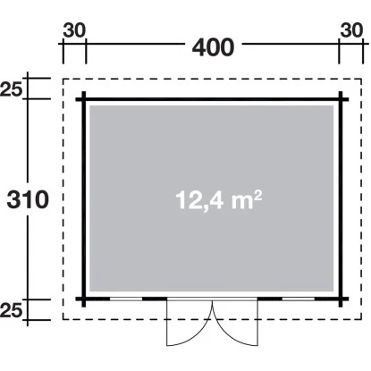 Das Wolff Finnhaus Gartenhaus aus Holz ist großzügig gestaltet mit einer Grundfläche von 12,4 m². Es bietet eine Durchgangsbreite von 134 cm und eine Durchgangshöhe von 186,7 cm. Der breite Eingang ermöglicht ein einfaches Betreten des Holz-Gartenhauses, auch mit größeren Geräten, Gartenutensilien, Fahrrädern und Gartenmöbeln. Die Firsthöhe beträgt 314 cm, wodurch eine angenehme Kopffreiheit im Innenraum gegeben ist. Der Boden ist bereits im Lieferumfang enthalten.