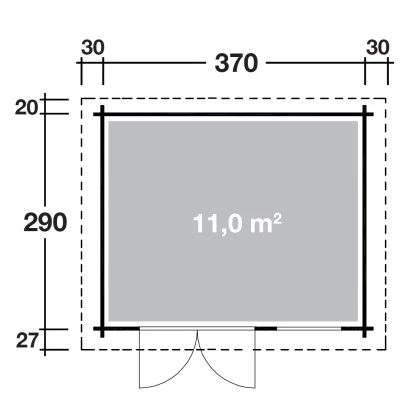 Das Wolff Finnhaus Holz-Gartenhaus ist geräumig gestaltet mit einer Grundfläche von 10,7 m². Es bietet eine Durchgangsbreite von 149 cm und eine Durchgangshöhe von 182 cm. Der breite Eingang ermöglicht ein einfaches Betreten des Holz-Gartenhauses, auch mit größeren Geräten, Gartenutensilien, Fahrrädern und Gartenmöbeln. Die Firsthöhe beträgt 217 cm, wodurch eine angenehme Kopffreiheit im Innenraum gegeben ist. Der Boden ist separat erhältlich.