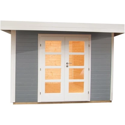 Das Gartenhaus aus Holz überzeugt durch sein skandinavisches Design und ist dabei in der Farbe Grau gehalten. Es eignet sich zum Verweilen, als Gartenpavillon, Geräteschuppen oder Freizeithaus.